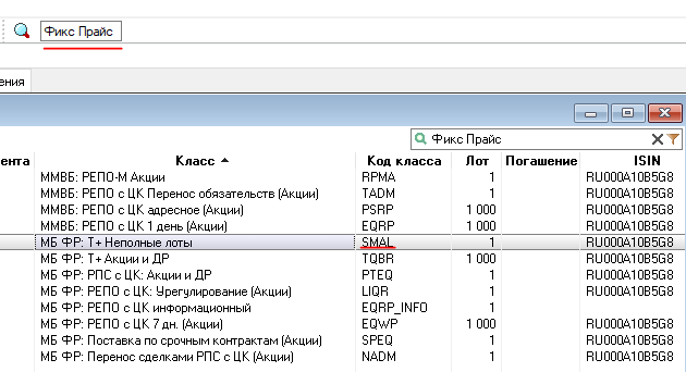 1) в верхнем меню в строке Поиск впишите «Фикс Прайс» и найдите инструмент с кодом класса SMAL;